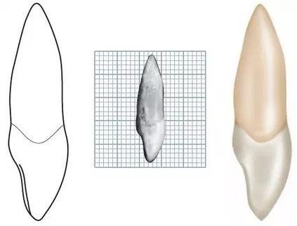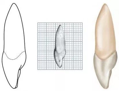 Raíz : Comprimento proporcional ao da coroa e tendência a conformação reta.