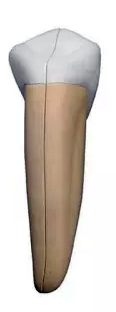 Parece haver mais da coroa na distal do longo eixo da raiz (aspecto de inclinação para distal);