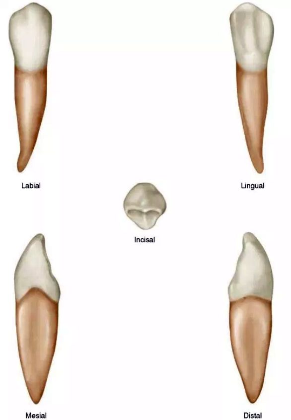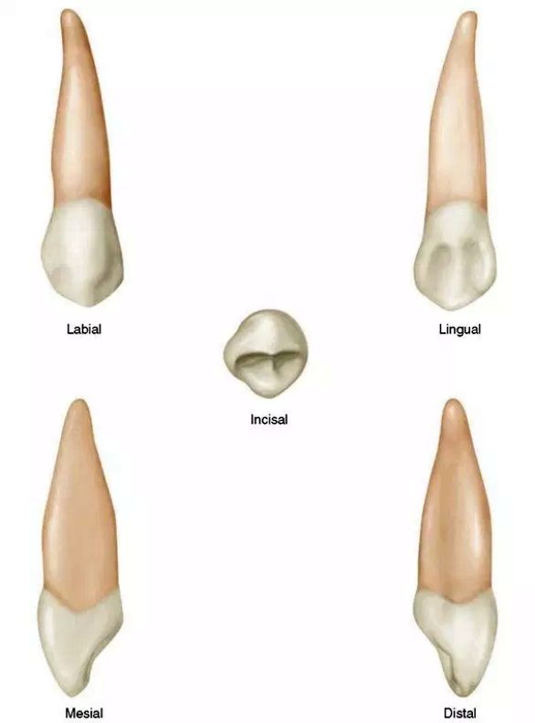 Vestibular – Comprida, cônica; Terço apical estreito, frequentemente para distal; Face vestibular mais convexa;
