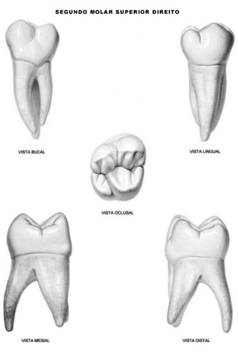 Segundo molar possui forma semelhante a um coração, com duas cúspides vestibulares e uma palatina;