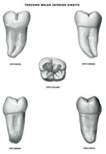 Diferenciam-se dos primeiros e segundos molares por apresentarem raízes mais curtas e frequentemente fusionadas;